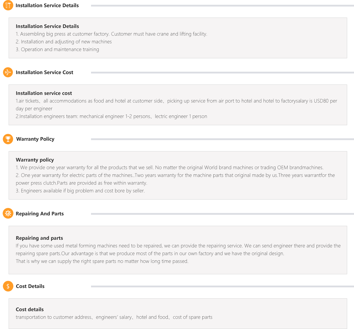 We can provide installation service for all the sold out machines at customer factory. Small machines can be shipped assembled and some big machines must be shipped disassembled. That is why we provide installation service to our customer.
